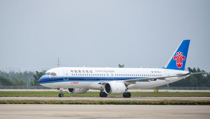 2024年12月11日,由C919執飛的中國南航CZ6786航班在海口美蘭國際機場降落,國產大飛機C919在海南的商業飛行“首秀”順利完成。新華社記者 楊冠宇 攝