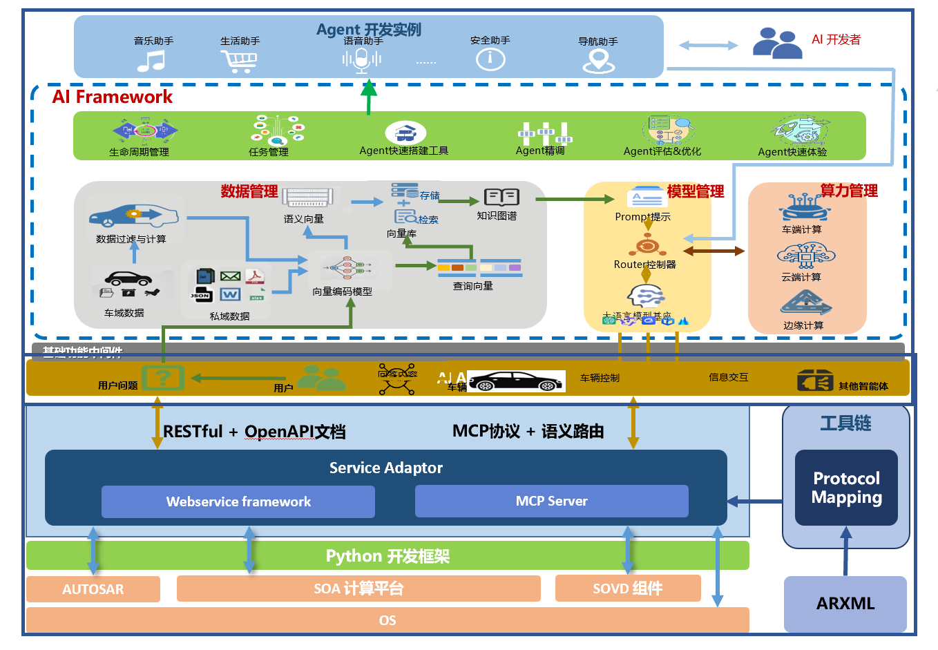 針對AIOS智能演化方面,李冰介紹:整車SOA(面向服務的軟件架構)之所以是AIOS(人工智能操作系統)的底層根基,本質是它為AIOS的“智能調度能力”提供了“可操作、可協同、可擴展”的服務基座,解決AI智能體如何將抽象需求轉化為具體服務組合的核心問題,是 AIOS 實現跨域聯動、動態適配的前提。