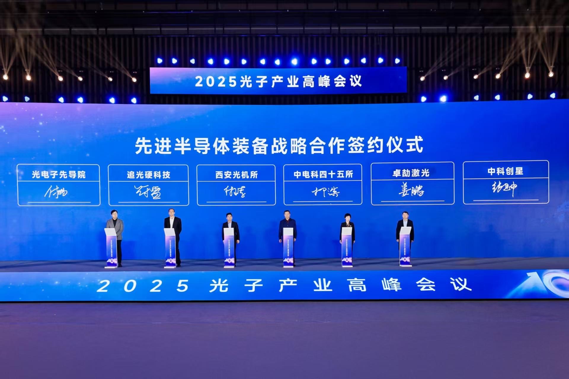 會議還舉行了先進半導體裝備戰略合作簽約儀式。中國科學院西安光機所、中國電子科技集團公司第四十五研究所、西安追光硬科技創業投資管理有限公司、中科創星、陜西光電子先導院科技有限公司、廣東卓劼激光科技有限公司等單位將加強合作,進一步完善光子產業鏈上游核心環節。