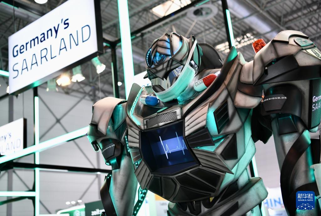 這是11月17日在德國(guó)杜塞爾多夫國(guó)際醫(yī)療器械設(shè)備展上拍攝的裝飾機(jī)器人。