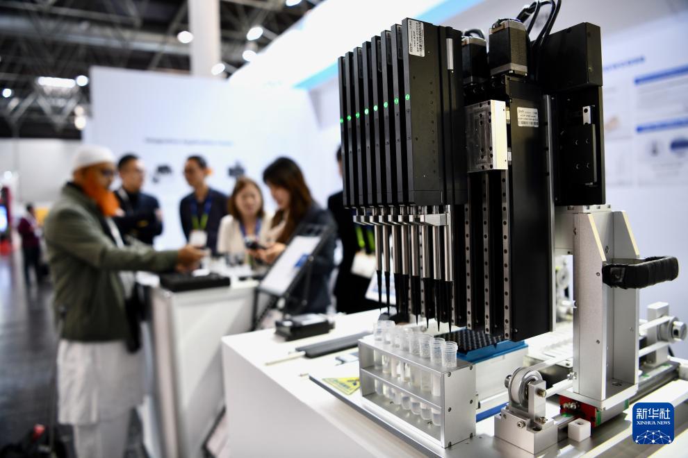 這是11月17日在德國(guó)杜塞爾多夫國(guó)際醫(yī)療器械設(shè)備展上拍攝的自動(dòng)移液器。