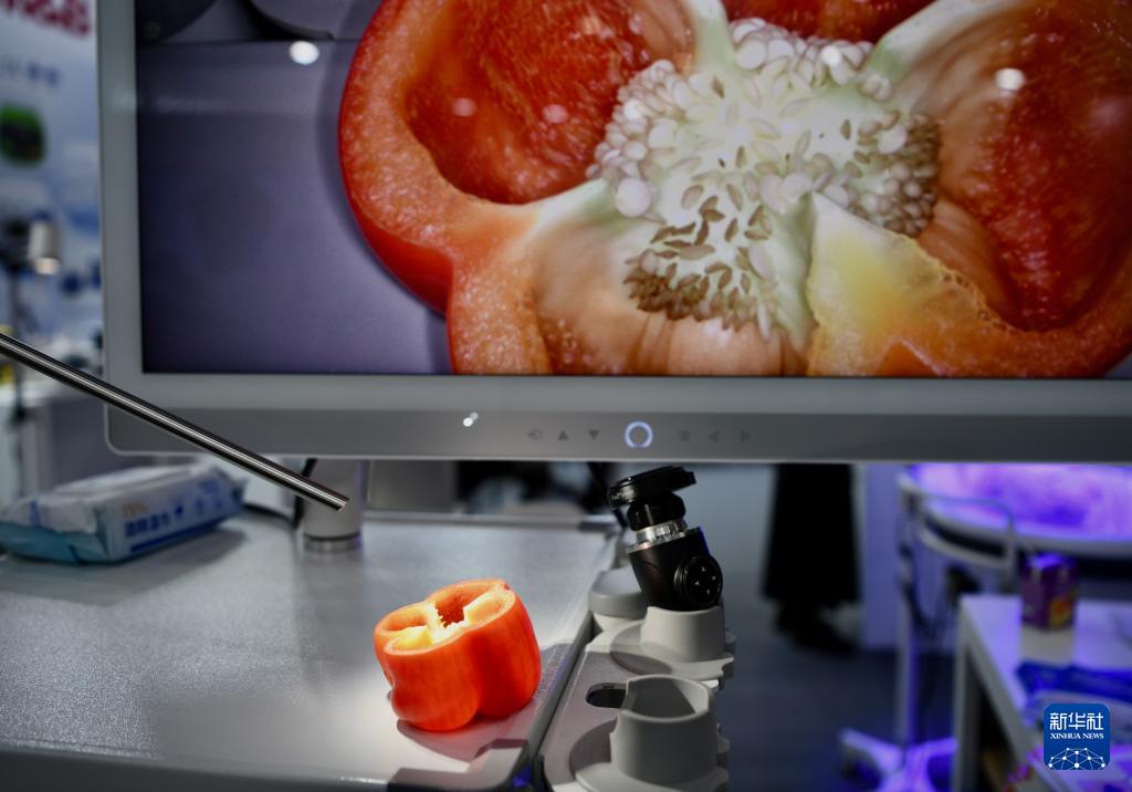 這是11月17日在德國(guó)杜塞爾多夫國(guó)際醫(yī)療器械設(shè)備展上拍攝的醫(yī)用光學(xué)設(shè)備。