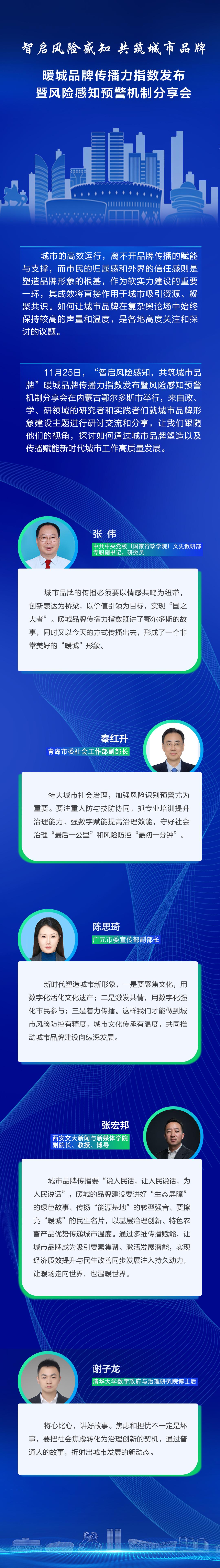 本報訊(記者 葉偉)11月25日,“智啟風(fēng)險感知,共筑城市品牌”暖城品牌傳播力指數(shù)發(fā)布暨風(fēng)險感知預(yù)警機(jī)制分享會在內(nèi)蒙古鄂爾多斯市舉行,來自政、學(xué)、研領(lǐng)域的研究者和實踐者們就城市品牌形象建設(shè)主題進(jìn)行研討交流和分享,讓我們跟隨他們的視角,探討如何通過城市品牌塑造以及傳播賦能新時代城市工作高質(zhì)量發(fā)展。