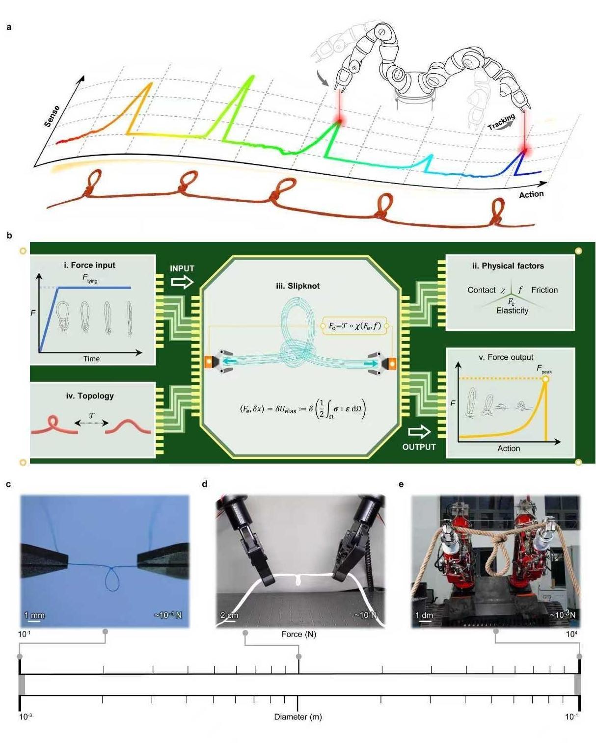 外科手術(shù)中傷口縫合的打結(jié)是項(xiàng)精細(xì)活。結(jié)打松了,難以有效止血;結(jié)打緊了,容易斷線或損壞器官組織。中國(guó)科學(xué)院院士、浙江大學(xué)航空航天學(xué)院交叉力學(xué)中心主任楊衛(wèi)團(tuán)隊(duì)和中國(guó)科學(xué)院院士、浙江大學(xué)醫(yī)學(xué)院附屬邵逸夫醫(yī)院院長(zhǎng)蔡秀軍團(tuán)隊(duì),歷時(shí)三年開(kāi)展交叉研究,闡明了“基于活結(jié)的力學(xué)傳導(dǎo)機(jī)制”,并創(chuàng)新性研發(fā)出“Sliputure(活結(jié)智能縫線)”,成功將其應(yīng)用于外科縫合,解決了機(jī)器人手術(shù)“力盲”缺陷。此項(xiàng)研究于北京時(shí)間11月27日以封面文章的形式登上國(guó)際學(xué)術(shù)期刊《自然》。