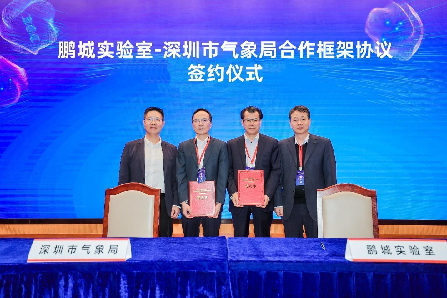 本次論壇舉行多項(xiàng)簽約儀式,鵬城實(shí)驗(yàn)室與深圳市氣象局簽署合作框架協(xié)議,雙方將在人工智能氣象預(yù)報(bào)等領(lǐng)域深化合作,共同推動(dòng)基于超智數(shù)融合體系結(jié)構(gòu)的氣象預(yù)報(bào)員助手等示范應(yīng)用落地。