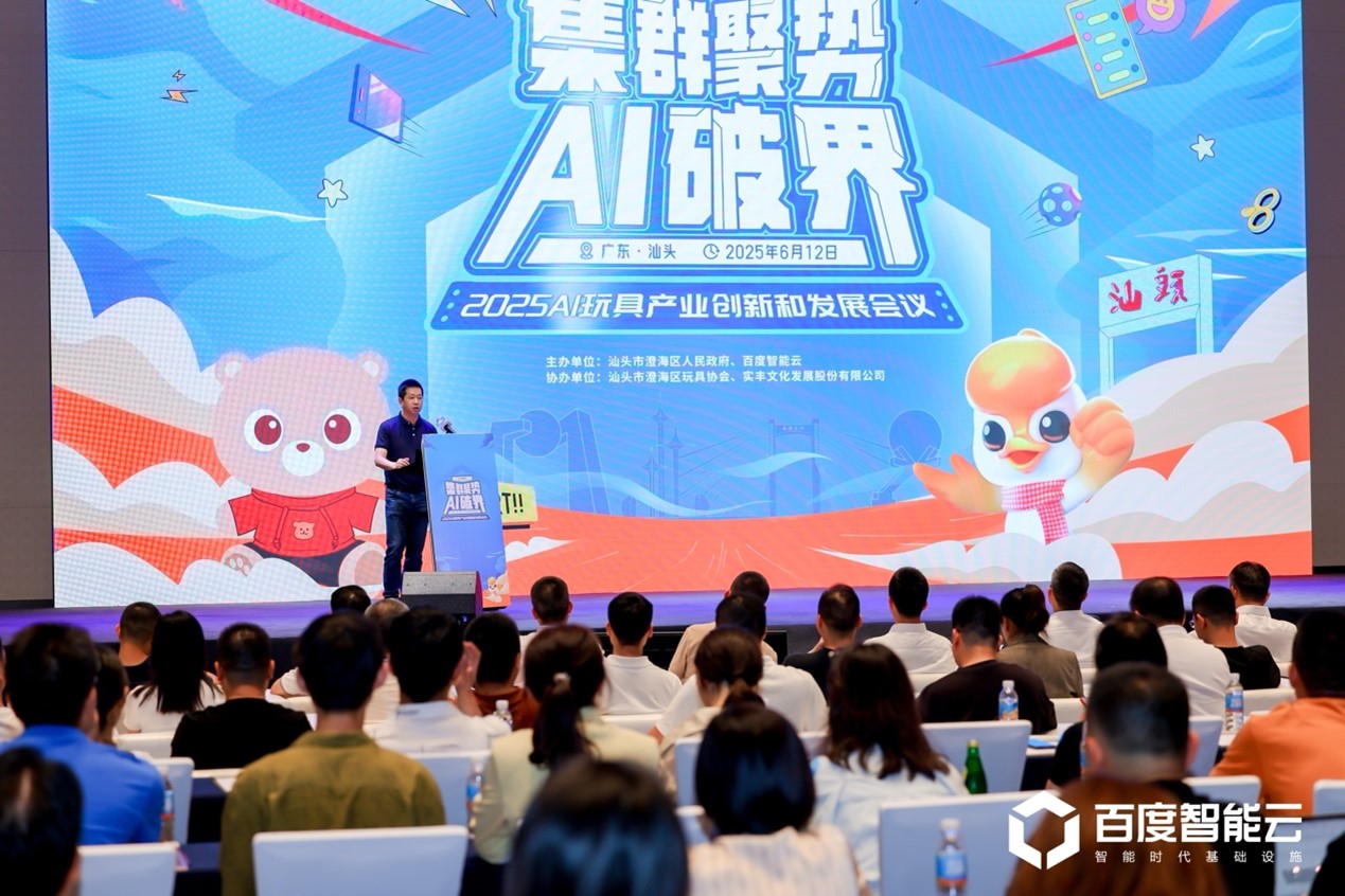 6月12日,由百度智能云、汕頭市澄海區(qū)人民政府主辦,澄海玩具協(xié)會(huì)與實(shí)豐文化發(fā)展股份有限公司(以下簡稱“實(shí)豐文化”)協(xié)辦的2025 AI玩具產(chǎn)業(yè)創(chuàng)新和發(fā)展會(huì)議在“中國玩具禮品之都”澄海開幕。此次大會(huì)以“集群聚勢·AI破界”為主題,匯聚全球AI技術(shù)廠商、知名IP方及產(chǎn)業(yè)鏈上下游伙伴,共探AI玩具的生態(tài)構(gòu)建與創(chuàng)新發(fā)展路徑,加速傳統(tǒng)玩具制造向高端智造轉(zhuǎn)型升級。