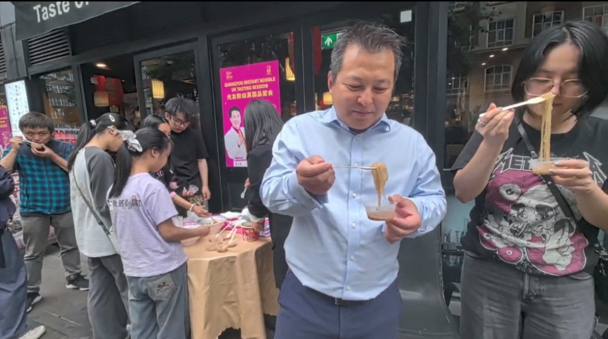 西南大學英國校友會會長、英國重慶商會會長、英國重慶味道集團董事長胡敏品嘗后連連點頭稱贊:“味道巴適得板!這就是地道的川渝味道,一口就勾起了家鄉記憶。”在粉絲吃完后把湯也喝完啦!