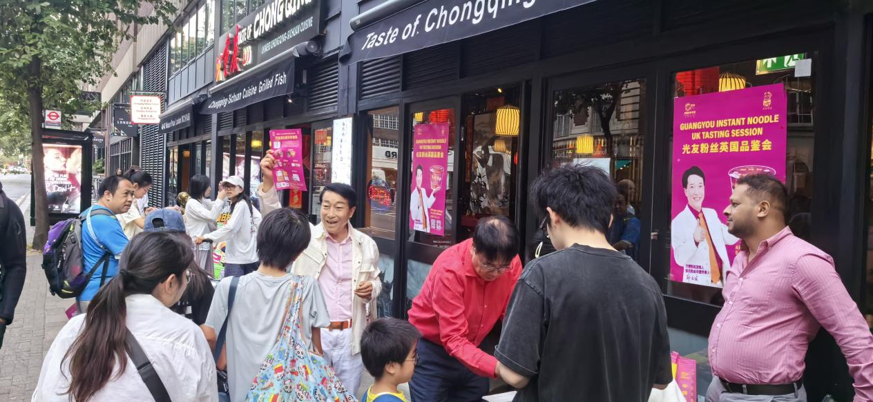 2025年8月16日及19日,光友粉絲團在倫敦重慶味道組織光友粉絲英國品鑒會,餐廳和街頭香氣四溢,光友粉絲英國品鑒會在此火熱開啟,光友低 Gi酸辣粉、光友酸辣粉網紅杯、光友mini 杯、光友綿陽米粉、光友9999重慶小面、光友紅油面皮等多款產品集體亮相,剛一擺上展臺就吸引全場目光,吸引倫敦街頭來自英國、德國、法國等世界各國成百上千的消費者上前品嘗。