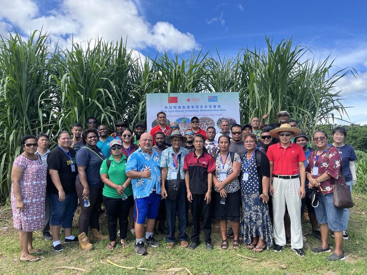 2024年2月28日,來自巴布亞新幾內(nèi)亞、湯加、庫克群島、薩摩亞、瑙魯?shù)葒业摹疤窖髰u國菌草技術(shù)培訓(xùn)班”學員在斐濟布拉阿格魯菌草技術(shù)示范基地合影。新華社發(fā)(中國援斐濟菌草技術(shù)示范中心供圖)