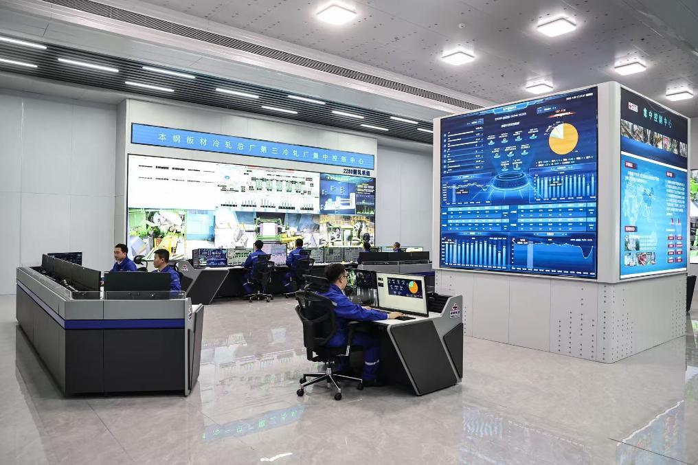 工作人員在鞍鋼集團所屬的本鋼板材冷軋總廠第三冷軋廠集控中心監控設備運行情況。新華社記者 潘昱龍 攝