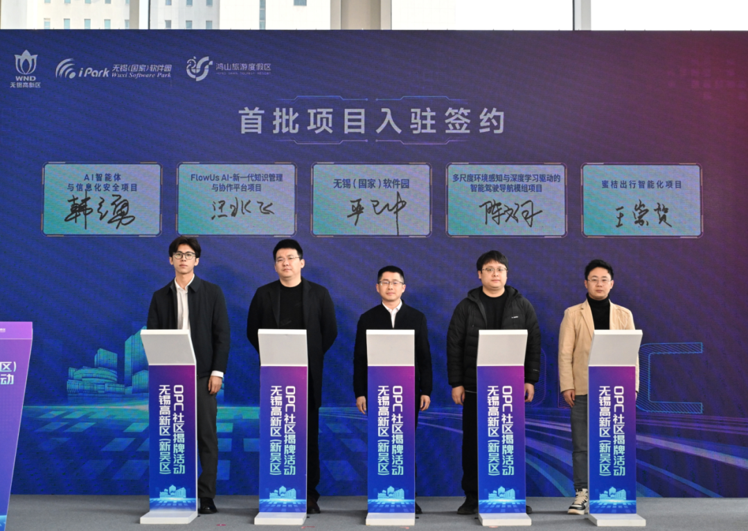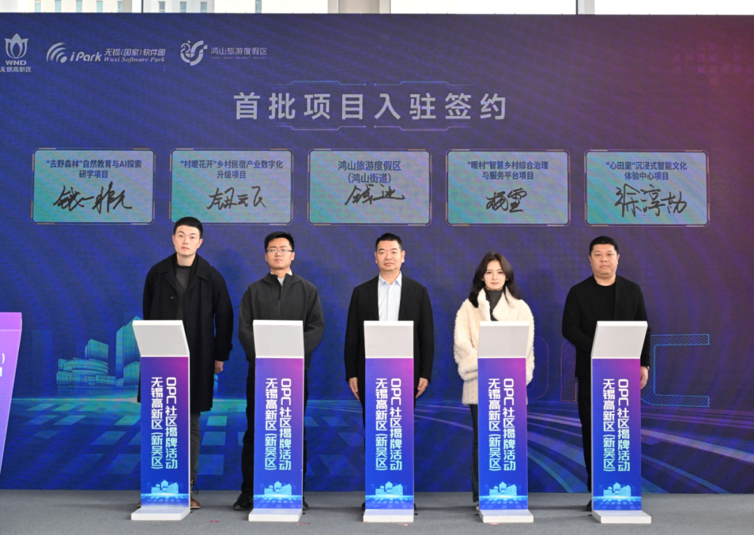 12月8日,無錫高新區(新吳區)OPC社區揭牌活動在無錫人工智能產業園舉辦。無錫市副市長周文棟,無錫高新區黨工委書記、新吳區委書記崔榮國出席活動并為“OPC社區—魔方空間和暖村數字游民村落”揭牌,標志著無錫高新區搶抓AI風口、探索創新范式已進入實質行動階段。無錫市工業和信息化局副局長秦曉華,國聯集團副總裁、無錫數據集團董事長陳琦,無錫高新區領導顧國棟、闕堯堯、李桂林參加活動。