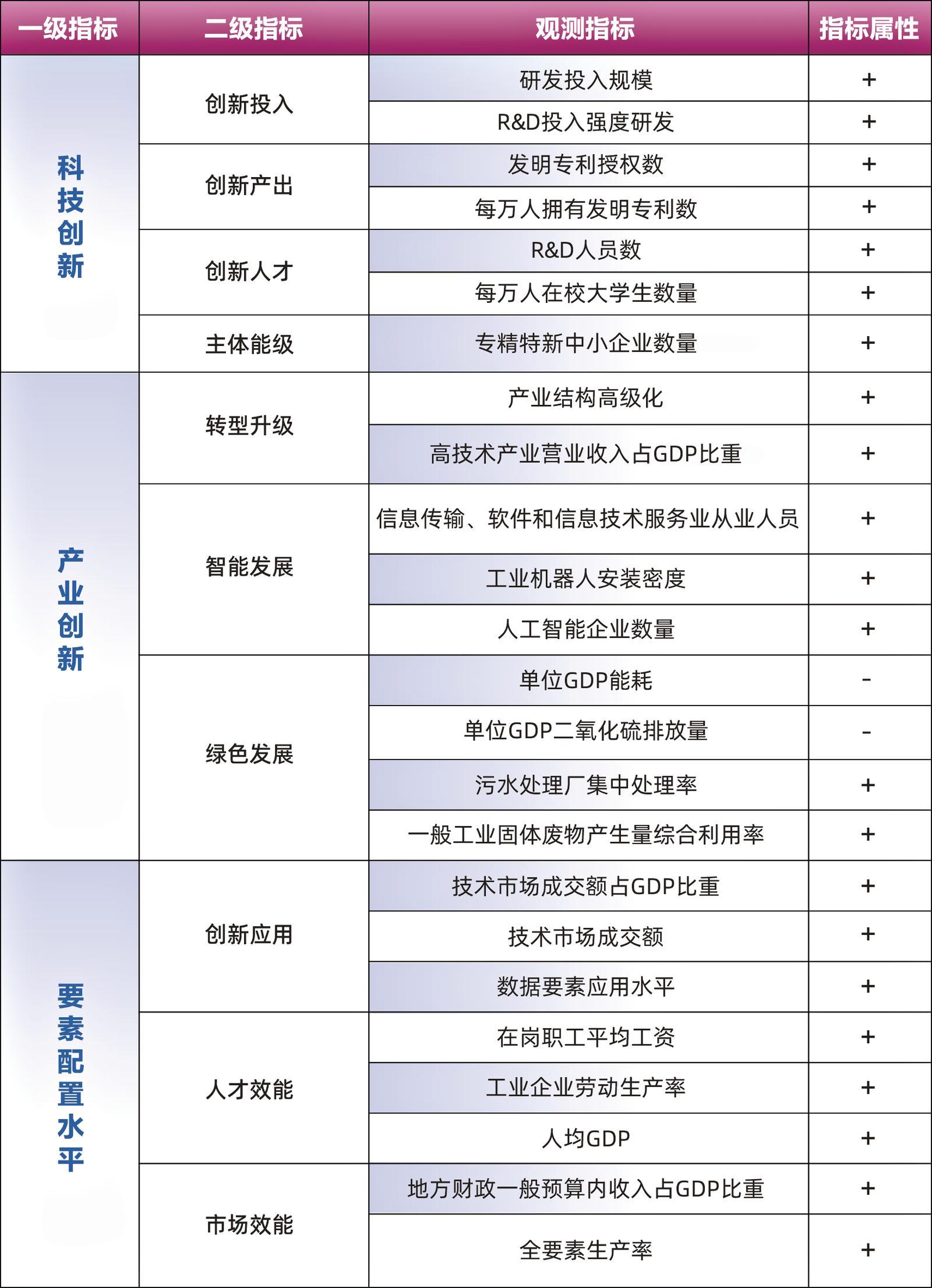 《報(bào)告》構(gòu)建涵蓋科技創(chuàng)新、產(chǎn)業(yè)創(chuàng)新、要素配置三大維度的指標(biāo)體系,下設(shè)10余項(xiàng)二級(jí)指標(biāo),全面評(píng)估城市新質(zhì)生產(chǎn)力發(fā)展水平。科技創(chuàng)新是新質(zhì)生產(chǎn)力的核心驅(qū)動(dòng),是突破傳統(tǒng)生產(chǎn)要素約束、催生新產(chǎn)業(yè)新動(dòng)能的關(guān)鍵。將科技創(chuàng)新作為一級(jí)指標(biāo),直接對(duì)應(yīng)新質(zhì)生產(chǎn)力“創(chuàng)新起主導(dǎo)作用”的本質(zhì)特征。產(chǎn)業(yè)創(chuàng)新是新質(zhì)生產(chǎn)力的落地載體,也是發(fā)展新質(zhì)生產(chǎn)力的落腳點(diǎn),通過傳統(tǒng)產(chǎn)業(yè)轉(zhuǎn)型升級(jí)、戰(zhàn)略性新興產(chǎn)業(yè)培育發(fā)展與未來產(chǎn)業(yè)規(guī)劃布局,推動(dòng)現(xiàn)代化產(chǎn)業(yè)體系完善與經(jīng)濟(jì)高質(zhì)量發(fā)展。要素配置是新質(zhì)生產(chǎn)力的效率保障,通過優(yōu)化創(chuàng)新應(yīng)用、人才效能、市場(chǎng)效能,提升全要素生產(chǎn)率。新質(zhì)生產(chǎn)力不同于以往只強(qiáng)調(diào)科技單一維度的評(píng)價(jià),該體系強(qiáng)調(diào)系統(tǒng)觀,涵蓋技術(shù)革命性突破、產(chǎn)業(yè)深度轉(zhuǎn)型升級(jí)和生產(chǎn)要素創(chuàng)新性配置3個(gè)層面,其中“新”代表著新技術(shù)與新產(chǎn)業(yè),“質(zhì)”代表著高效能與高質(zhì)量。